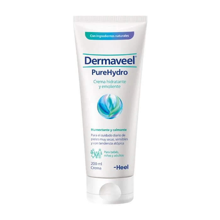 Dermaveel PureHydro de Laboratorios Heel es una crema emoliente indicada para el cuidado diario de pieles secas, sensibles y con tendencia atópica.