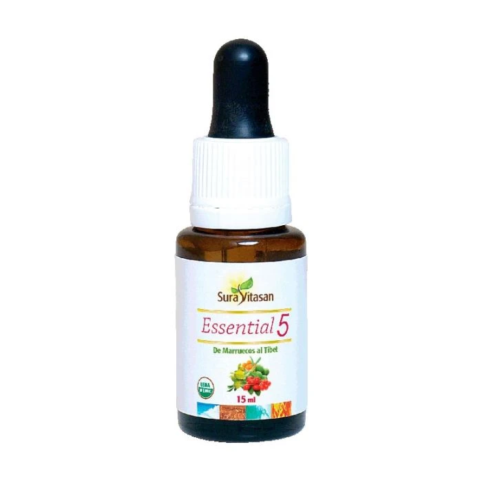 Mezcla de 5 aceites vegetales (Goji, Rosa Mosqueta, Espino Amarillo, Argán y Tamanu) que actúan en sinergia para el cuidado de la piel. Las cualidades combinadas de los aceites Essential 5 de Sura Vitasan favorecen una hidratación profunda y rejuveneciendo la piel al mismo tiempo.