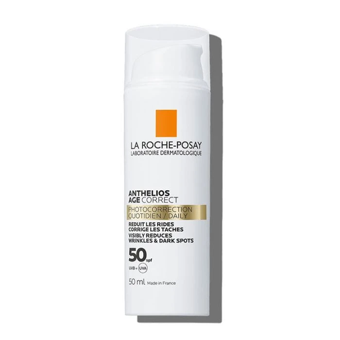 Anthelios Age Correct SPF50+ de La Roche Posay representa la nueva generación en fotoprotección diaria antiedad que protege y corrige los signos de la edad en 4 semanas. Complementa la protección solar de amplio espectro con activos correctores dermatológicos, como Ácido Hialurónico, Niacinamida y Phe Resorcinol.