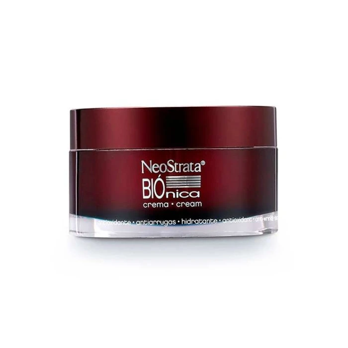 Neostrata Biónica crema, con ácido lactobiónico, gluconolactona y ácido hialurónico, forma una matriz reestructurante sobre la piel que sella la hidratación y protege la piel de las agresiones externas.
