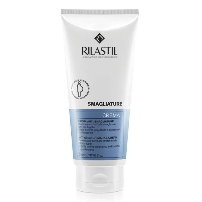 La crema antiestrías Rilastil Smagliature ayuda a prevenir prevenir y combatir las estrías atróficas provocadas por la rotura de las fibras de colágeno y elastina durante la adolescencia, el embarazo u otras variaciones de peso importantes y/o repentinas.