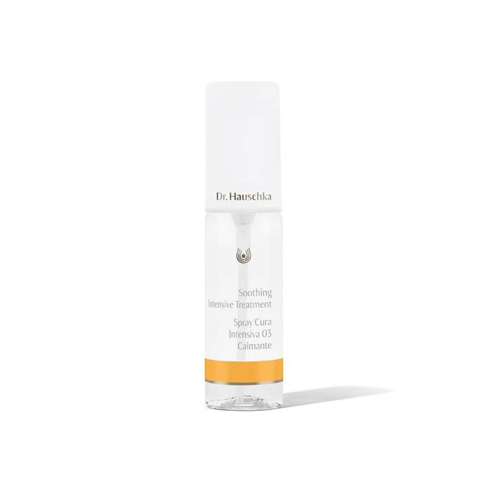 El spray Cura Intensiva 03 de Dr Hauschka cuida la piel en situaciones de desequilibrio y le da el impulso normalizador que necesita. Para la piel hipersensible, sometida a estrés y con tendencia a irritarse, el spray Cura Intensiva 03 Calmante ofrece un tratamiento cosmético intensivo y eficaz. Su fórmula contiene turmalina negra, planta de la escarcha, anthyllis, agua termal y agua de rosas, para equilibrar, tonificar y proteger la piel.